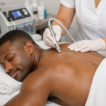 The Back Acne Facial Royale is a deep pore skin cleansing for your back: a skin analysis, double cleanse, Microdermabrasion exfoliation, extractions, mask, & moisturizer for the back.